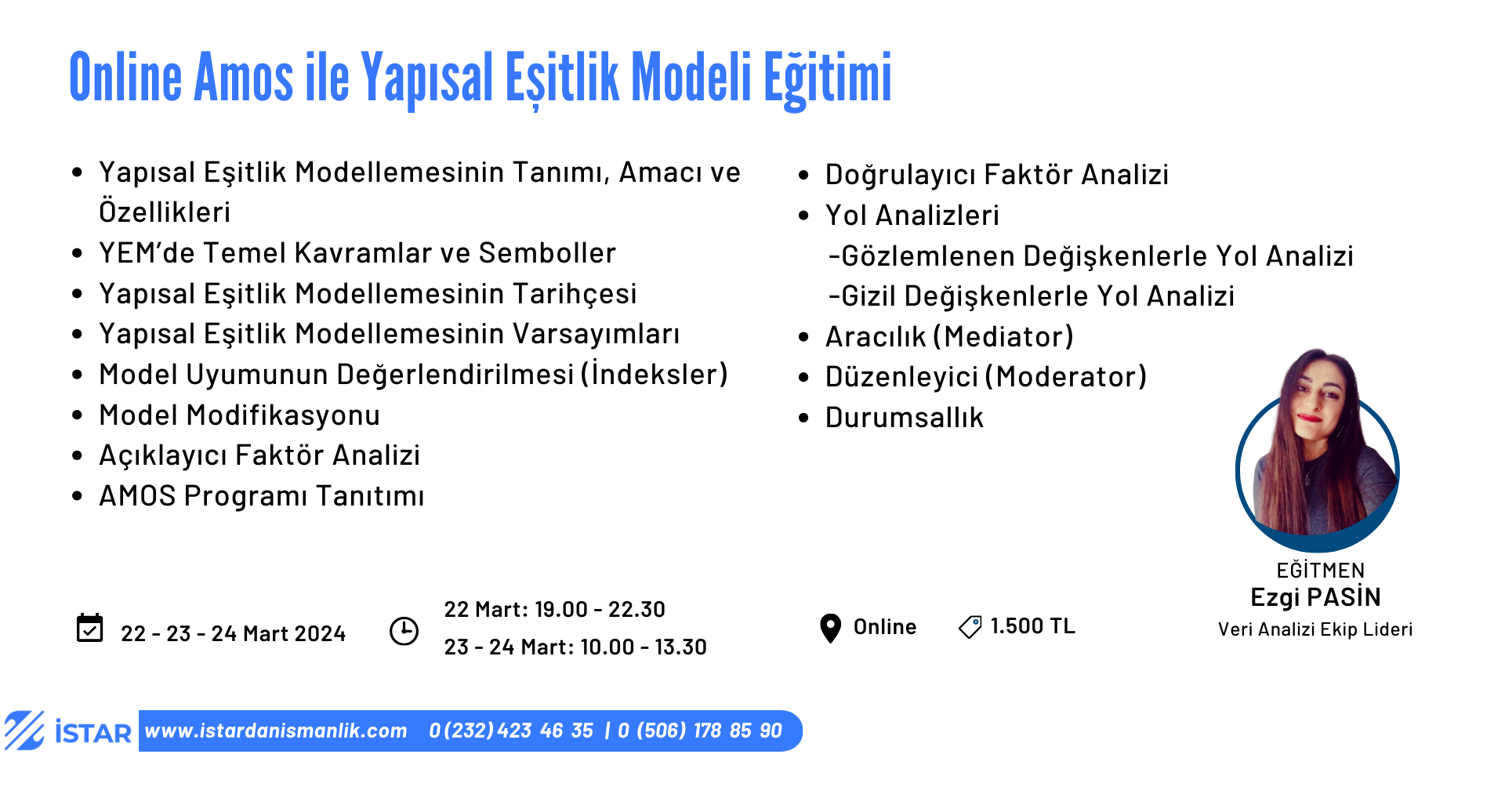 Online Amos ile Yapısal Eşitlik Modeli Eğitimi (22 - 23 - 24 Mart 2024)