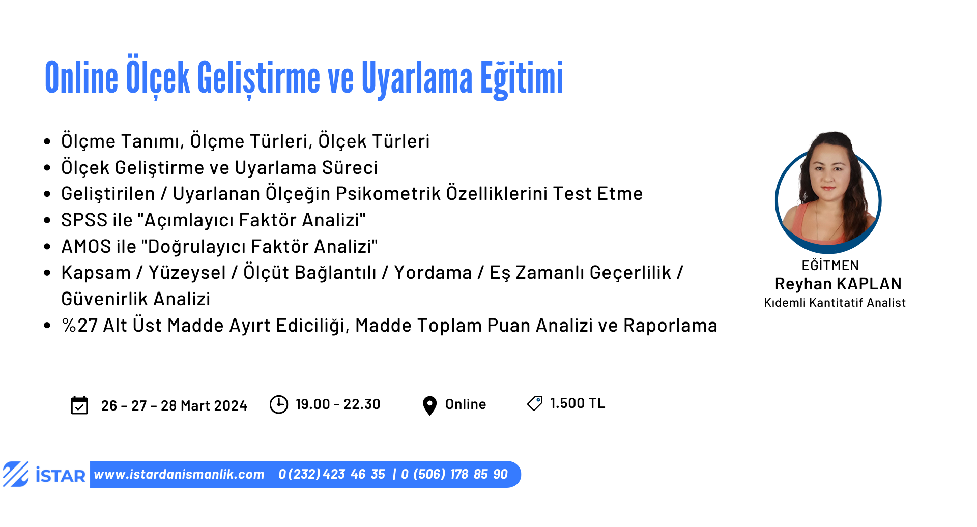 Online Ölçek Geliştirme ve Uyarlama Eğitimi (26 – 27 – 28 Mart 2024)